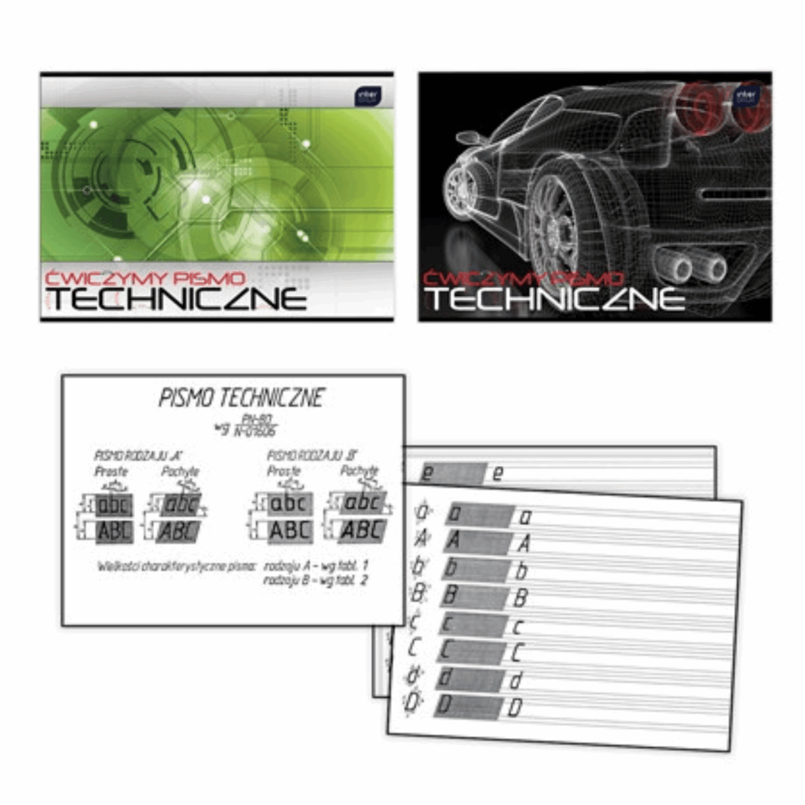 Format: A4. Książeczka z ćwiczeniami udoskonalającymi pismo techniczne.