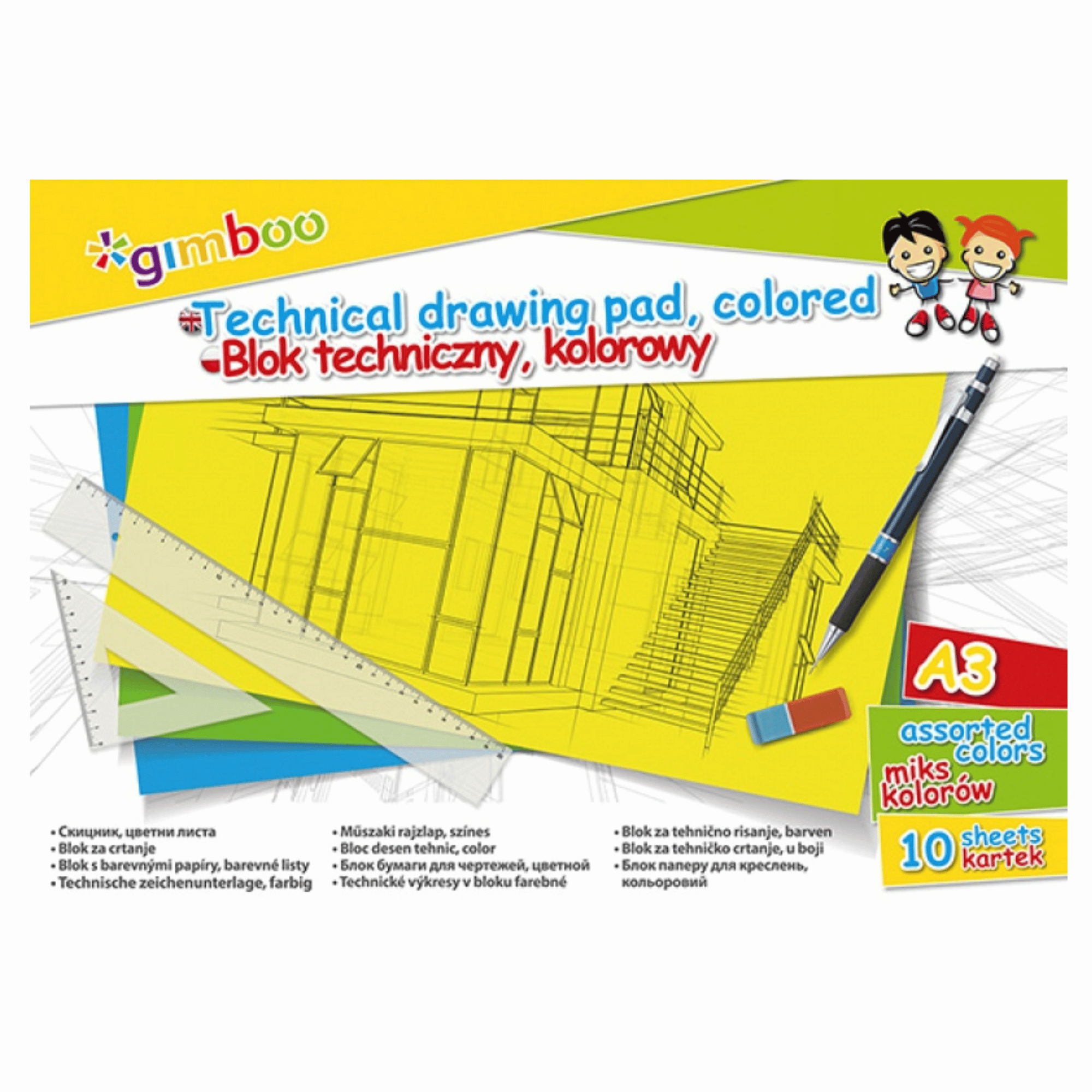 Blok techniczny GIMBOO, A3, 10 kart., 150gsm, mix kolorów