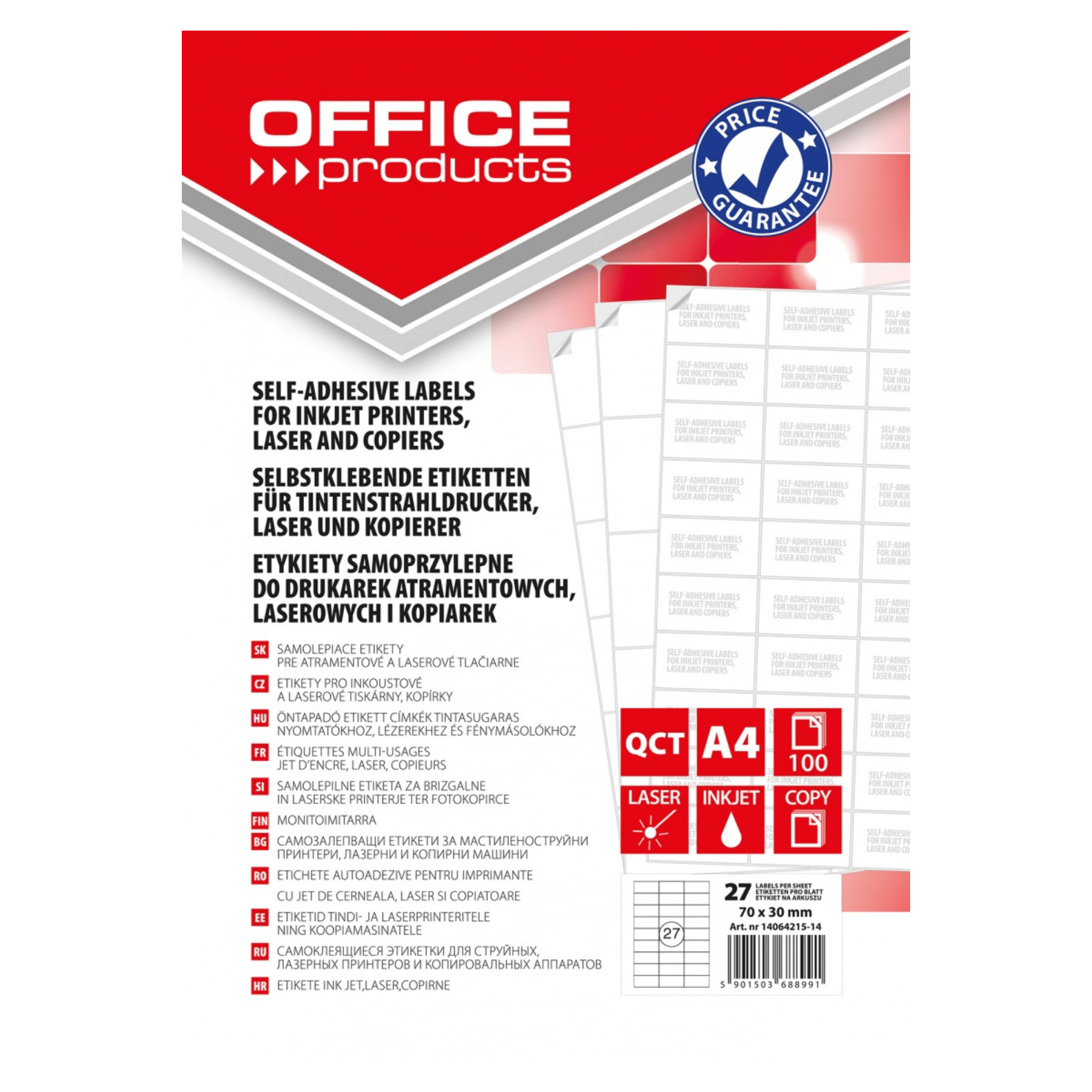 Etykiety OFFICE PRODUCTS, 70x30mm, białe, 100 ark.