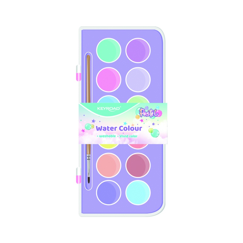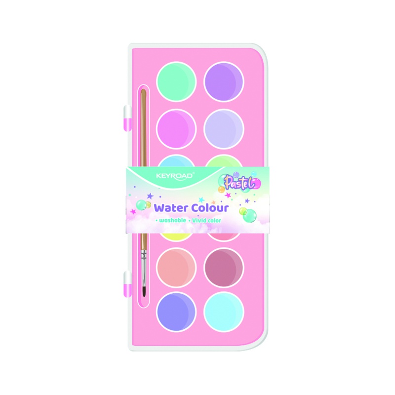 Farby akwarelowe KEYROAD, z pędzelkiem, 12 kolorów pastelowych, zawieszka