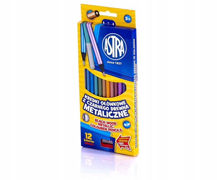 Kredki dla DZIECI METALICZNE 12 kolorów temperówka