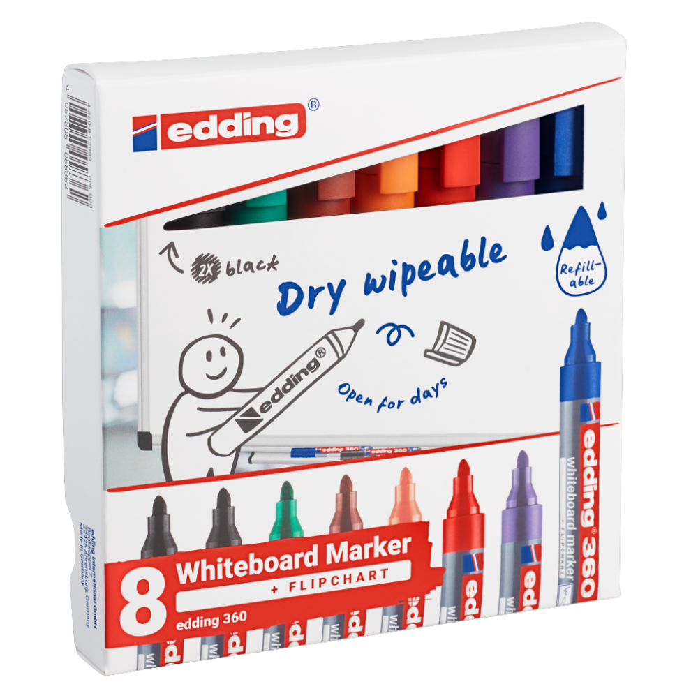 Marker do tablic e-360 EDDING, 1,5-3mm, 8 szt., mix kolorów