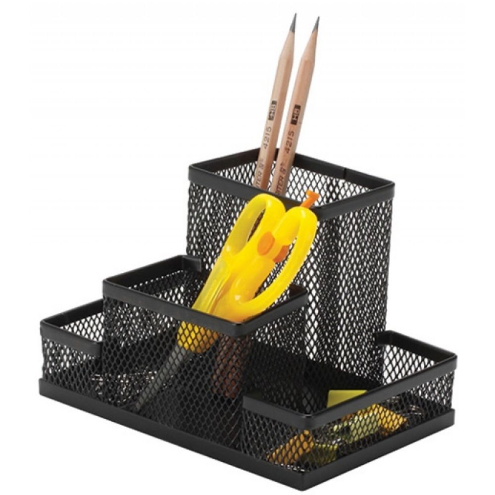 Przybornik na biurko Q-CONNECT Office Set, metalowy, 4 komory, czarny