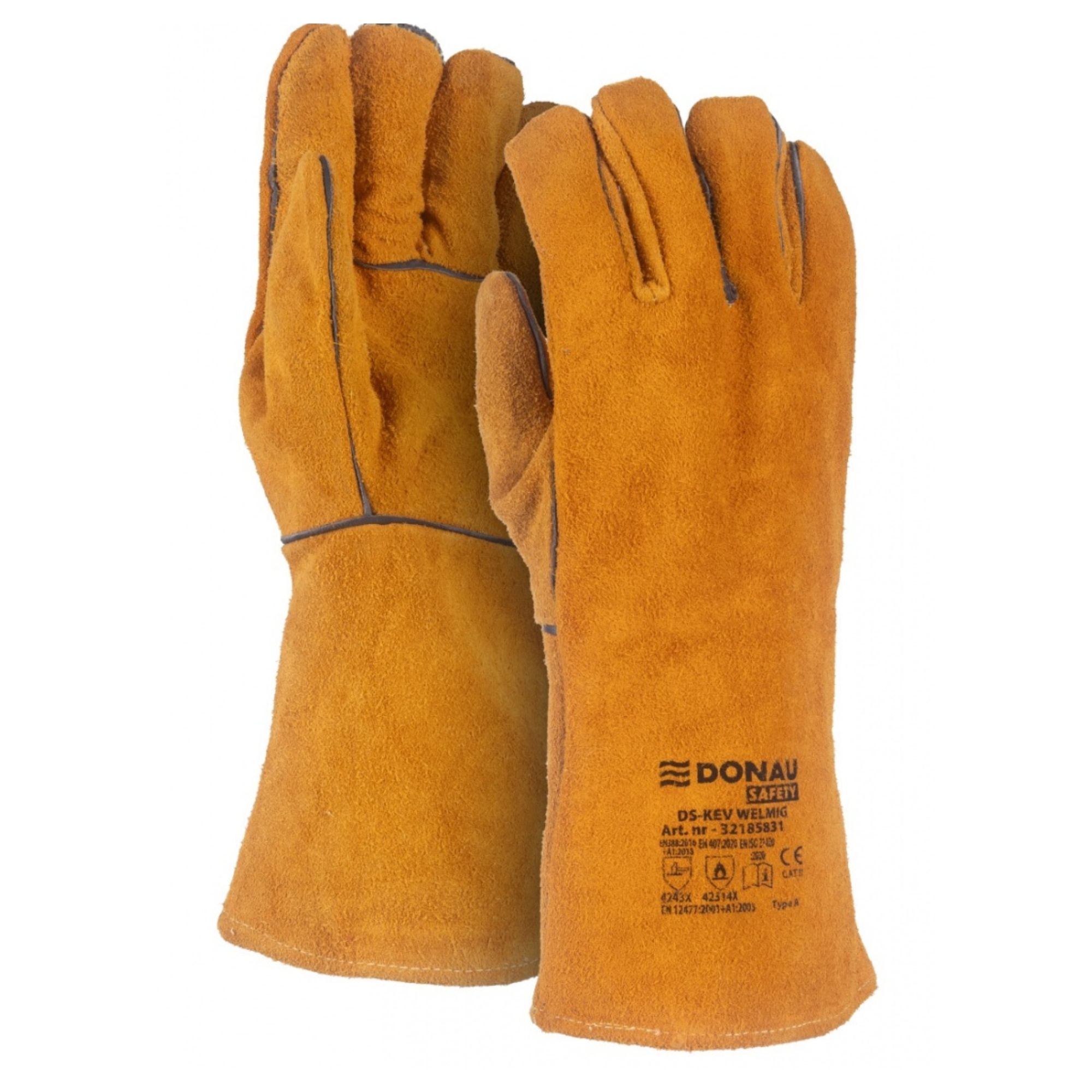 - rękawice ochronne spawalnicze do spawania metodą MIG wykonane w całości ze skóry bydlęcej dwoinowej o wysokiej wytrzymałości