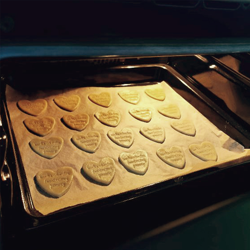To właśnie odbity wzór sprawia, że Twoje ciastko jest tak wyjątkowe! Doskonale podkreśli charakter przyjęcia – ciastka z imionami pary młodej, ciastka z podziękowaniami, ciastka z datą urodzin, ciastka z inicjałami. Nasz stempel pomoże Ci przekazać Twoją słodką informację całemu światu. Ogranicza Cię tylko wyobraźnia.