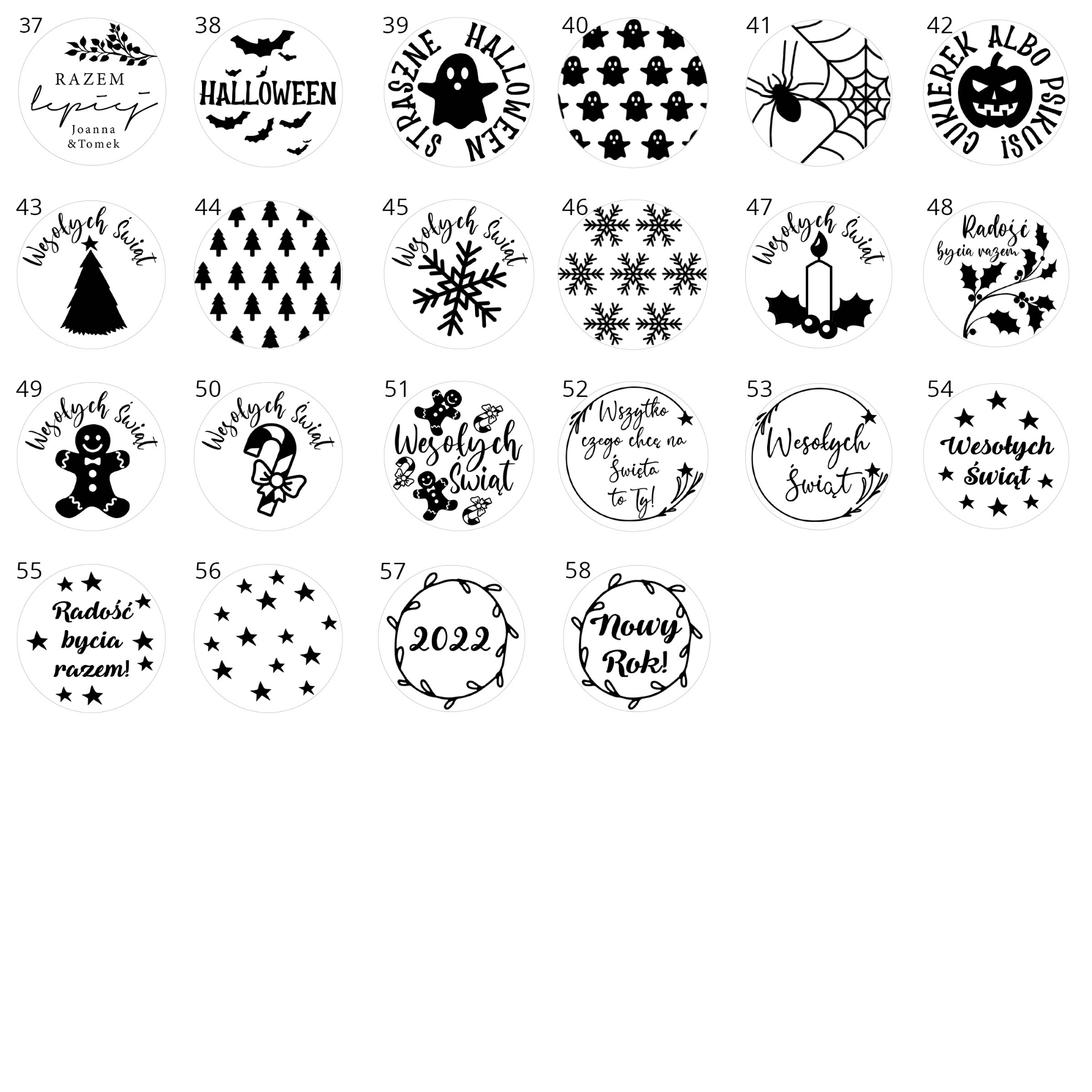 Poznaj kolekcję zaprojektowanych przez nas gotowych wzorów stempli do ciastek! To nie wszystko – kolorem czerwonym zaznaczone zostały elementy, które możesz spersonalizować!