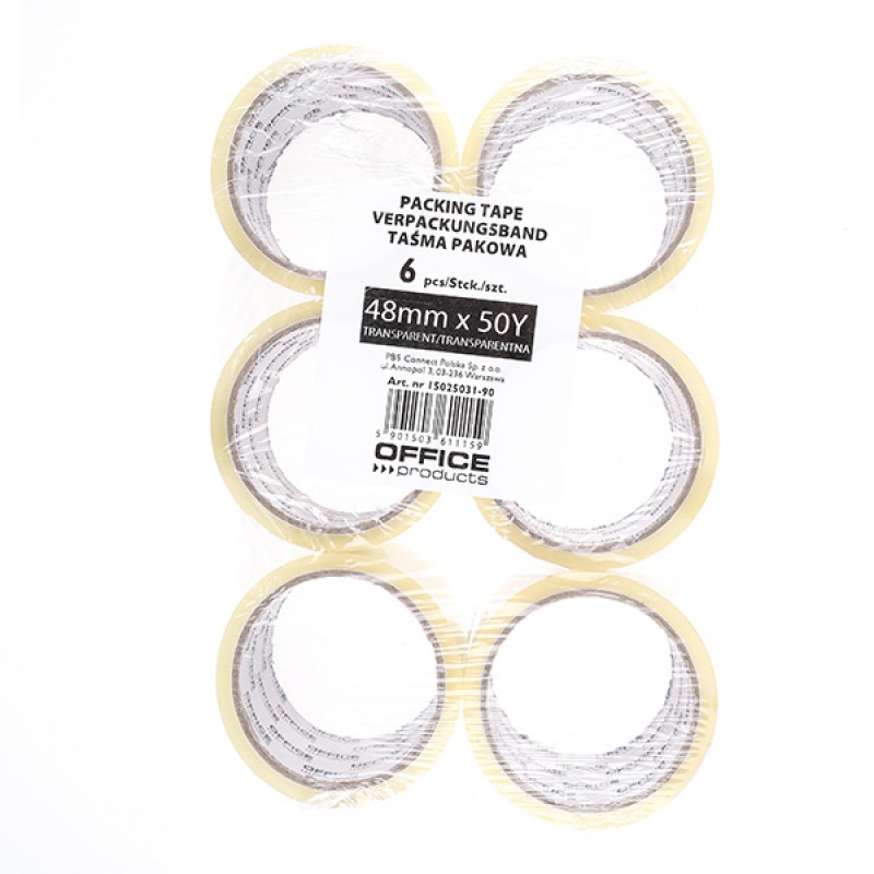 Taśma pakowa OFFICE PRODUCTS, 48mm x 50y, 36mic, 6szt., transparentna