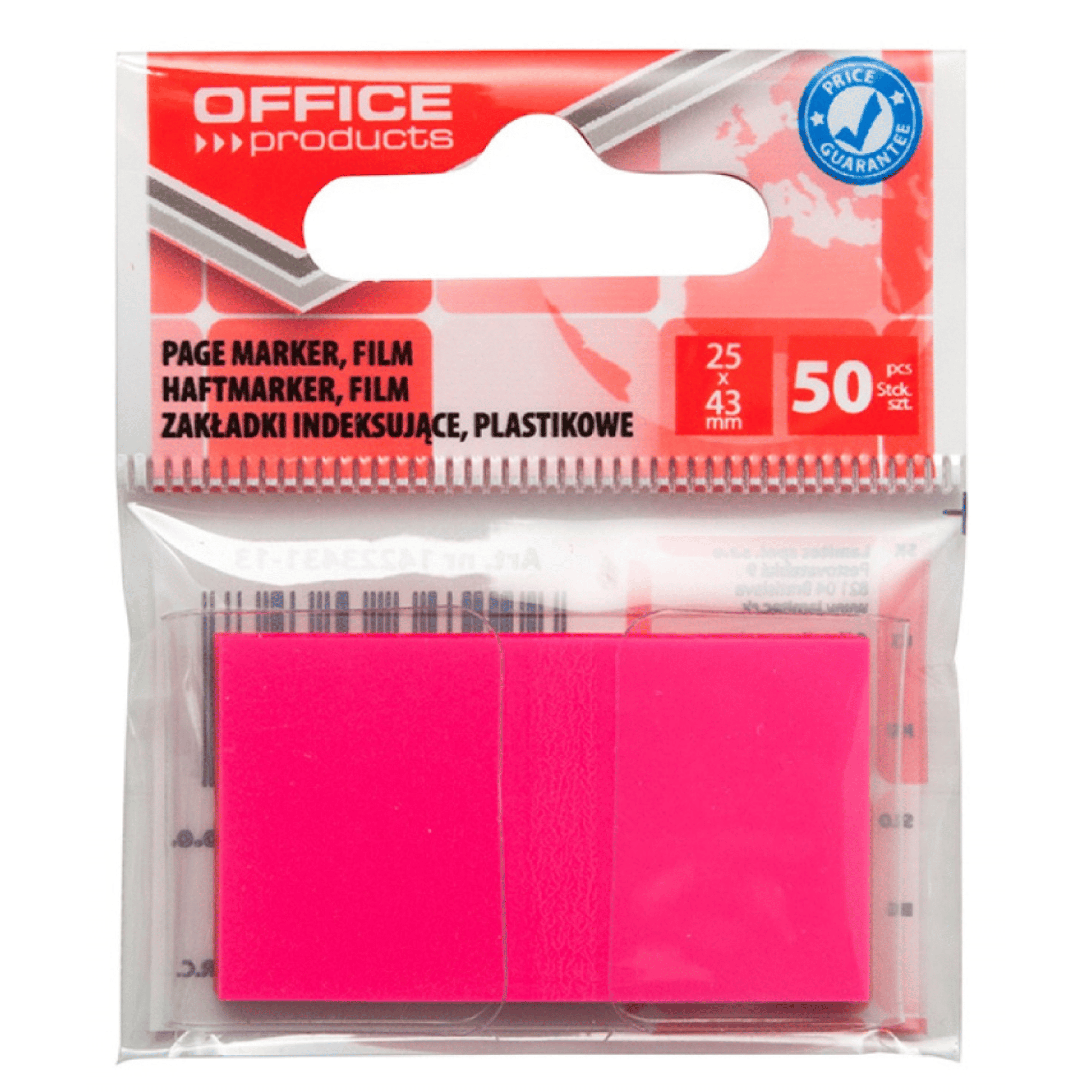 Zakładki indeksujące OFFICE PRODUCTS, PP, 25x43mm, 1×50 kart., zawieszka, różowe