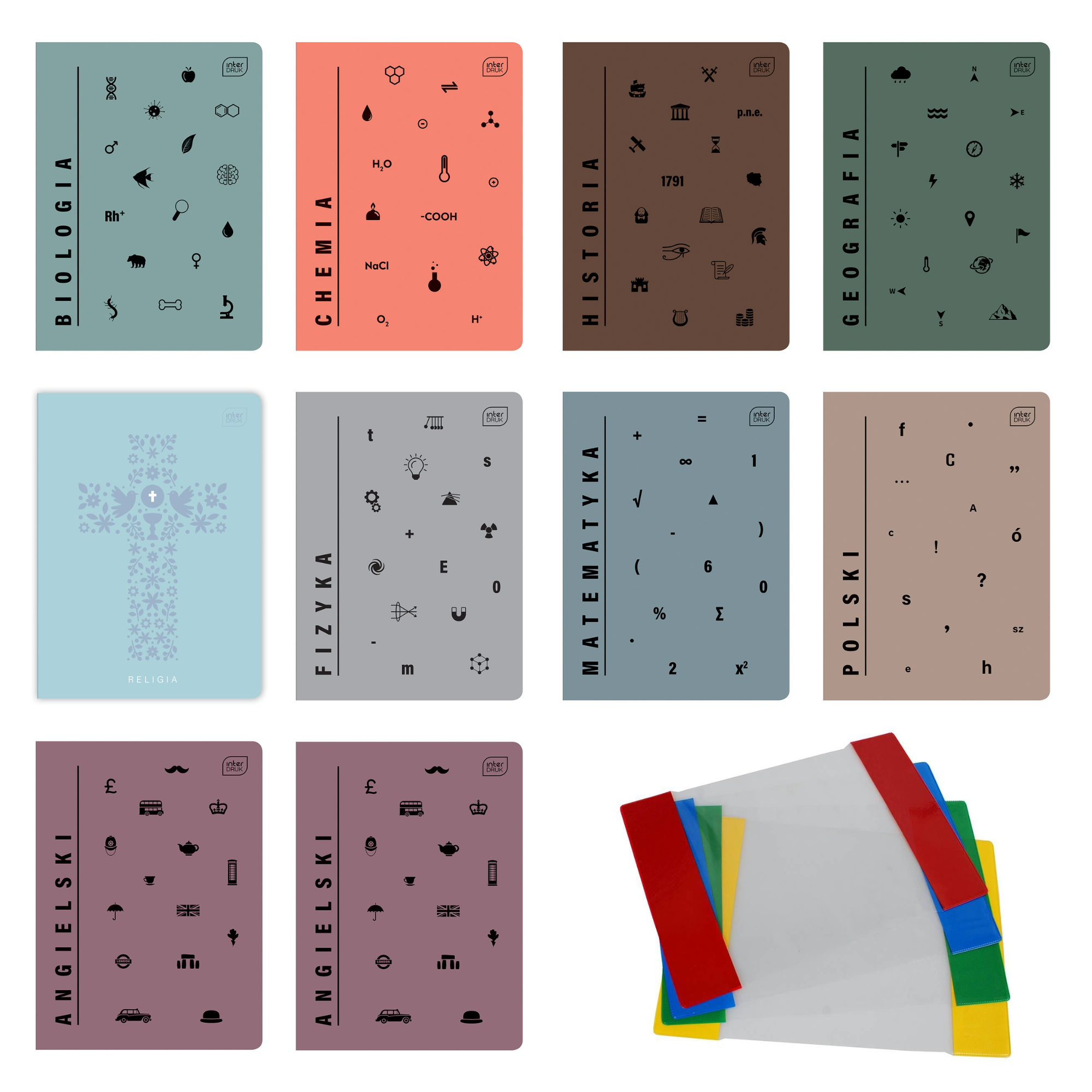 Zestaw zeszytów tematycznych A5/60k 10 szt 2xAng + 10szt okładek